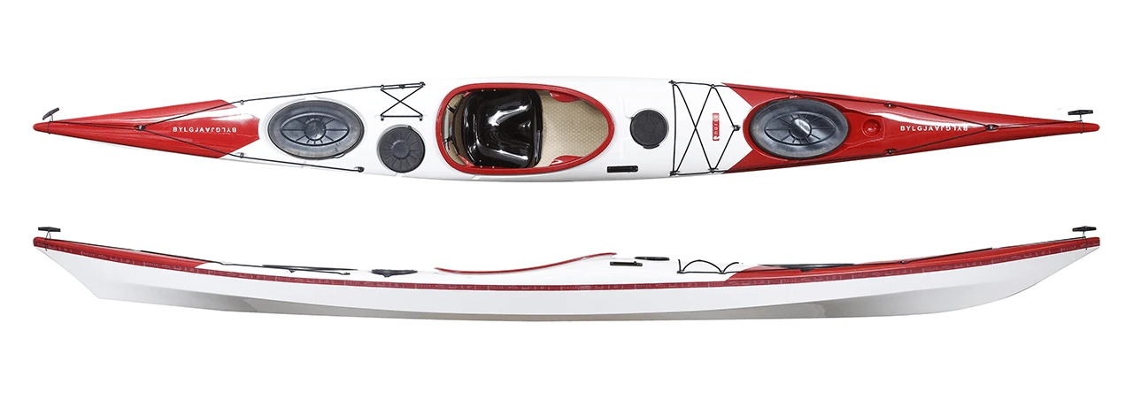 The Bylgja by Norse Kayaks is a hard chined kayak, the larger counterpart to the Idun. With a pronounced rocker and hard chines this kayak is a joy to paddle, whether on a calm day trip, or multi-day excursions in choppy seas. The Bylgja excels in rough seas: tackle tide rapids, surf, and swell with great control. The vacuum infused composite hull features aramid reinforcement along the chines and keel, offering excellent strength in a lightweight package. The day hatch behind the cockpit as well as the front deck pod offer great opportunities to keep those on the water essentials close at hand.