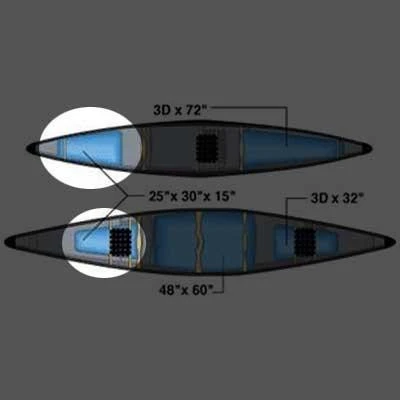 Solo Front or Tandem Either End, 25″ x 30″ x 15″. If swamped in whitewater, a canoe must do more than just float…it must float high to avoid submerged rocks. We strongly recommend supplemental flotation bags in whitewater of Class II or above. Constructed of nylon and PVC.