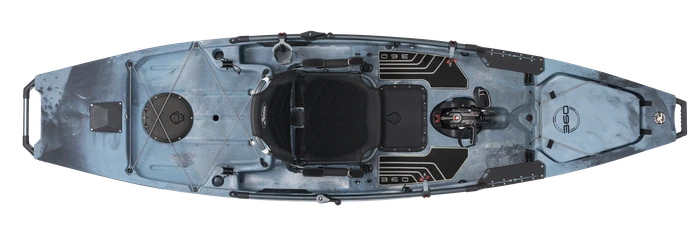 - Miragedrive 360 with Kick-up ST Turbo Fin: Revolutionary hands-free propulsion system. When pedaled, the flexible fins assume the shape of a propeller blade, providing forward motion with each pedal stroke.
