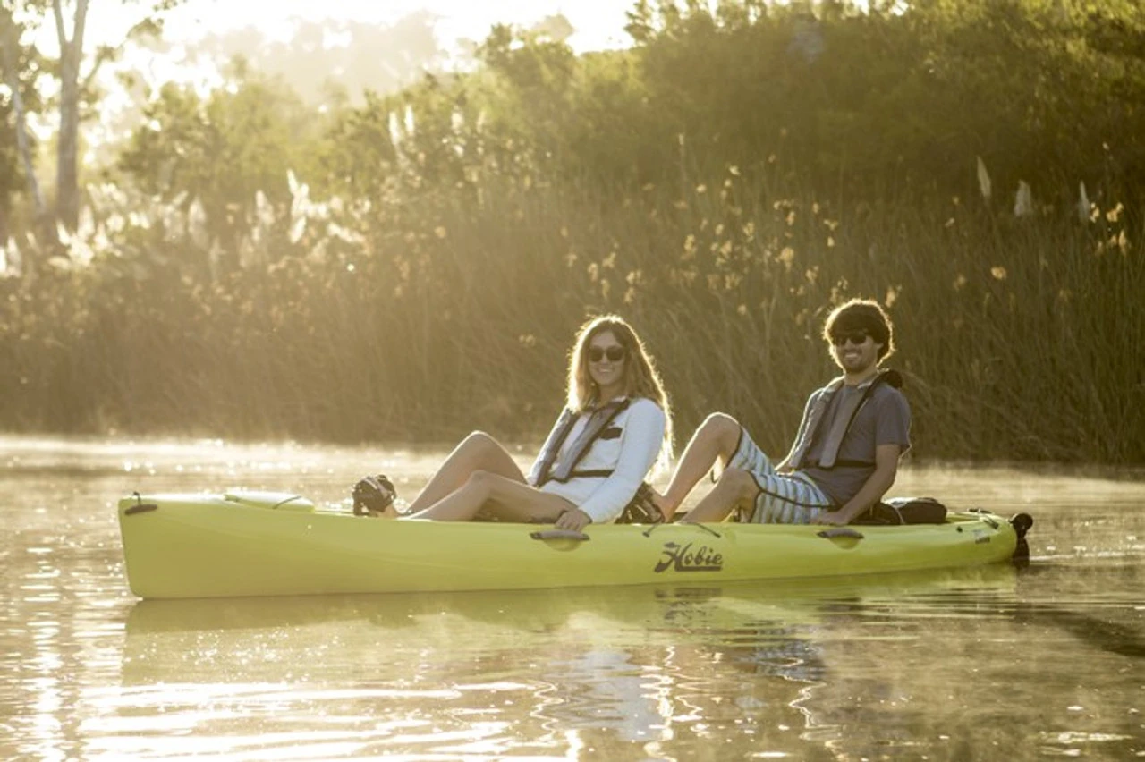 Large Twist and Stow Rudder: Hobie’s Twist and Stow Rudder is there when you need it, gone when you don’t. A standard accessory on most Mirage models, the retractable-rudder system is engaged and disengaged with a pull of the T-shaped control handles.