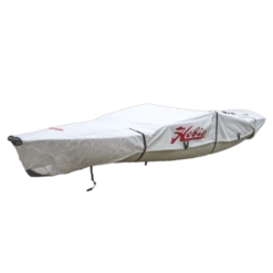 Hobie Kayak Custom Covers made by Danuu. Easy to install or remove, fits over the hull (like a fitted sheet on a mattress). Straps and pull string adjust for a tighter fit. Cross straps secure the cover on your hull for windy conditions. Heavy duty UV resistant canvas material in a neutral color for better aging. To help prevent distortions to the hull bottom shape, Hobie recommends that our kayak hulls be stored upside down resting on the cockpit rails. This is also best for deflecting rainwater and prevents water pooling in the cockpit or on the cover. When planning to store a hull upright, be sure to properly support the hull bottom to prevent hull distortions. Covers may not entirely cover some hulls, especially with accessories installed.