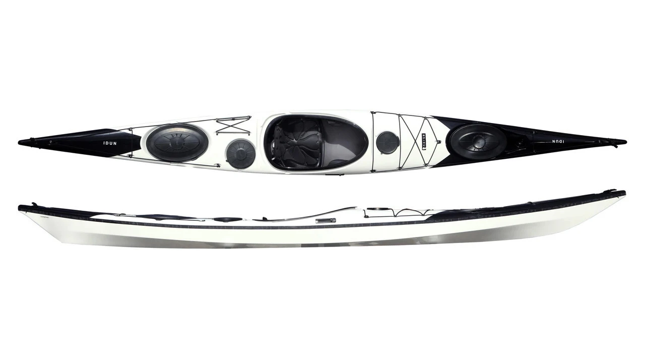 The Idun by Norse Kayaks is a hard chined kayak, the smaller counterpart to the Bylgya. With a pronounced rocker and hard chines, this kayak is a joy to paddle, whether on a calm day trip, or a multi-day excursion in choppy seas. The Idun excels in rough seas: tackle tide rapids, surf, and swell with great control. The vacuum infused composite hull features aramid reinforcement along the chines and keel, offering excellent strength in a lightweight package. The day hatch behind the cockpit as well as the front deck pod offer great opportunities to keep those on the water essentials close at hand.