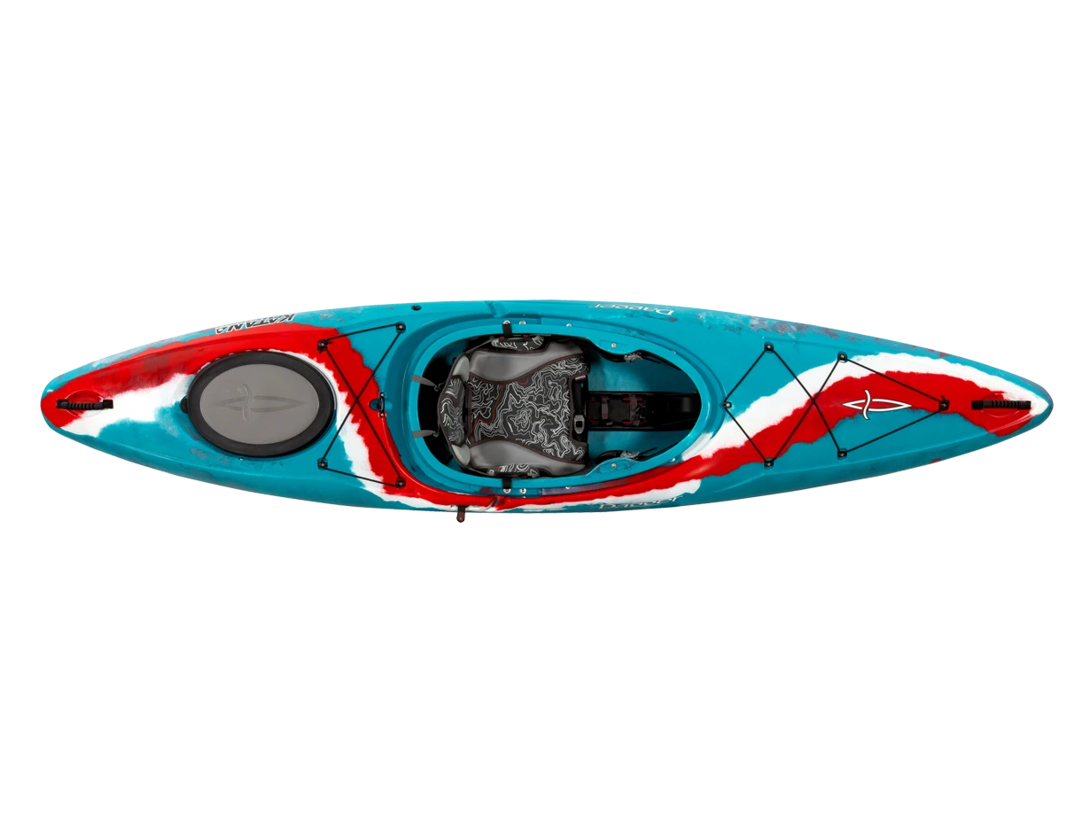 A crossover kayak that truly excels in any water, the Katana was designed to inspire confidence in the paddler with a balanced rocker profile for speed in the flats and maneuverability in whitewater. The hull is designed for initial stability while the beveled and flared side-walls create secondary stability. The rounded stern deck shape, taken from the Mamba design, sheds water easily, making it forgiving in moving water. The Katana also offers a more spacious cockpit than traditional whitewater designs for a less confining feeling. Removable bulkheads and reinforced hatches offer unparalleled gear storage, while the drop skeg add speed and stability.Â