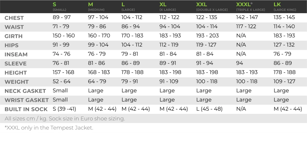 - Kokatat Size Chart