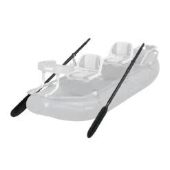 The 2:1 Anchor Assist Pulley simplifies anchor retrieval, and the package includes a Tornado Anchor. The Advantage Oar Shafts and Helix Oar Blades come together with oar sleeves and oar rights for straightforward assembly.
