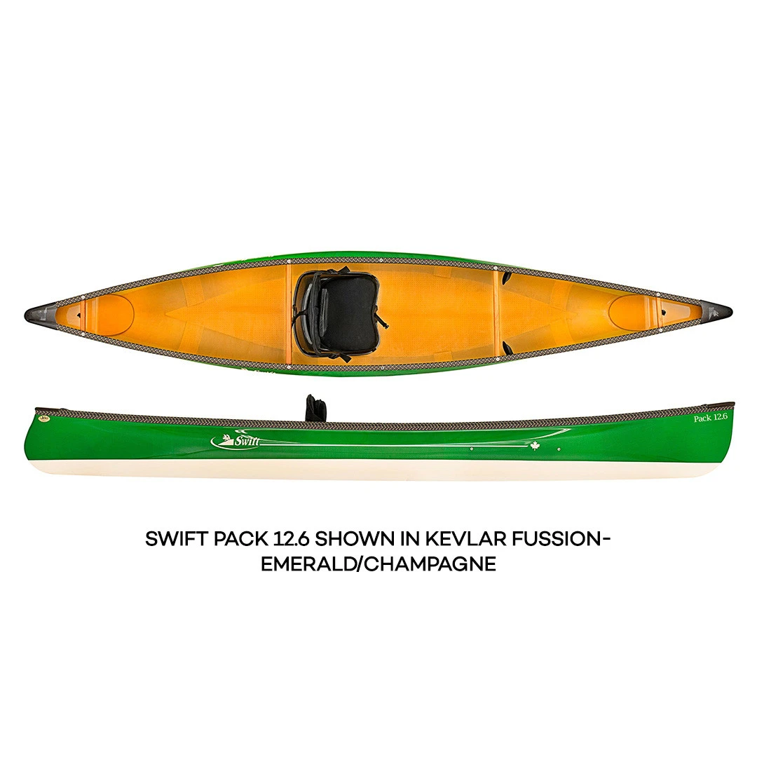The Swift Pack 12.6 is a lightweight, fast recreational boat that delivers impressive speed for its size, thanks to its rounded chines and significant tumblehome. With outstanding stability in any condition, this canoe is perfect for smaller to medium-sized paddlers who crave a smooth ride. Its lower profile and ergonomic design ensure a comfortable, unrestricted paddling experience, with a moderate 11″ center depth and a 28″ maximum width just behind the seat for effortless cruising. Despite its compact size, the Pack 12.6 boasts surprising interior volume, giving you plenty of space to pack everything you need for longer days on the water.