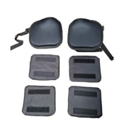 Shaped pads are included and attach to the seat with Velcro. They come with two straps to secure them around the seat, ensuring they stay in place during a swim. For easy adjustment, two additional pads are provided for each side. You can place one or two of these extra pads between the shaped pad and the seat as needed.