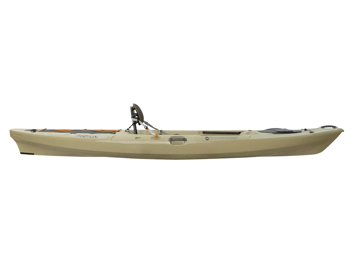 How do you improve upon a legend? Introducing the New Tarpon. Retaining everything paddlers love from the celebrated original with improved comfort, stability, speed and paddler interface, the new Tarpon is easily the most versatile boat in the Wilderness Systems lineup that is equally at home on rivers, lakes or oceans. Every detail is carefully crafted and executed flawlessly to bring you boundless paddling perfection. Blending celebrated legacy design elements with a re-imagined modern flair, the new Tarpon delivers a dynamic on-water performance with enhanced agility and unmatched stability, while well-executed and innovative features elevate the paddler’s overall experience. The renowned Phase 3® AirPro seating system offers easy three-point adjustability, while plush honeycomb-vented fabric and ergonomic 3D foam provide maximum airflow, comfort and support. The new Tarpon features the DryTec Case – a new integrated dry box to keep your valuables safe, the MagnaTec magnetic water bottle holder, and flexible mounting options and accessory integrations, all of which come standard with the boat. A protective and replaceable skid plate, comfortable rigid carry handles, industry-leading storage capabilities, and thoughtful and configurable deck bungee rigging rounds out a robust list of attributes.